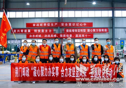 荆楚网(湖北日报网)讯(通讯员 彭钰 徐敏)为迎接“双11”大战,充分发挥党支部战斗堡垒作用和党员先锋模范作用,进一步深化党史学习教育“我为群众办实事”实践活动,11月11日,荆门邮政分公司综合职能一支部把党日活动地点搬到了该公司的邮件处理中心,在邮件处理中心开展了“凝心聚力办实事 合力攻坚显风采”主题党日活动,助力“双11”。