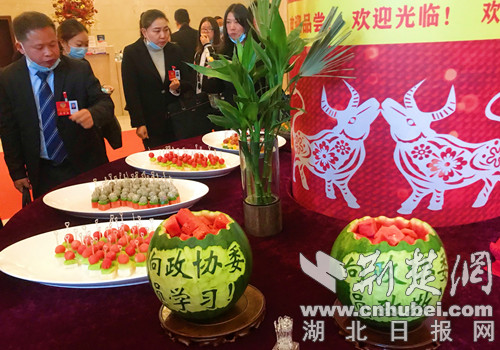 会议接待期间,各部门围绕服务保障,创造性的开展各项个性化服务。前厅部门口设置礼仪岗,礼仪人员着红色旗袍问好指引,大厅进行了精心布置,地面铺设了红毯 ,通道添置了绿植,中央摆放了茶歇区,还为委员们专门设置了书法展示区;餐饮部每天与各专委会主动沟通,及时了解和收集委员们对菜肴的意见反馈,做到荤素搭配、营养均衡、款款有新意、餐餐不重样;房务部为每个楼层配备万能充电器,提供24小时免费送洗服务;安保部提前与周边车场联系,预留免费车位,让每一辆委员的车都能找到停车位,让每一位委员们都感到宾至如归。