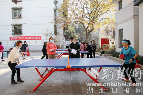 荆楚网(湖北日报网)讯(通讯员 罗晓菊)为丰富社区居民的文体生活,彰显辖区群众昂扬向上的精神风貌,11月18日上午,荆门市东宝区龙泉街道金虾河社区“清风杯”乒乓球比赛暨积分分享活动在社区文化小广场举行。