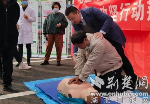 精彩、专业的演示,吸引了现场群众的围观,大家纷纷跃跃欲试,涂敏边示范、边指导,逐一纠正大家的手势、动作。“心梗救治时间的延误,患者自身是最主要的因素,多利用这样的活动让村镇居民了解正确的自救和及时就医方式,非常有必要。”石桥驿镇卫生院院长彭华武如是说。