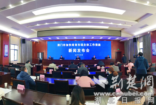 荆楚网(湖北日报网)讯(通讯员 李慧敏 易歆)11月24日,荆门市举行《荆门市加快培育市场主体工作措施》新闻发布会,荆门市出台系列措施,激发市场主体活力,促进市场主体快速增长,力争到2025年全市市场主体总量达到40万户、企业类市场主体总量达到10万户。