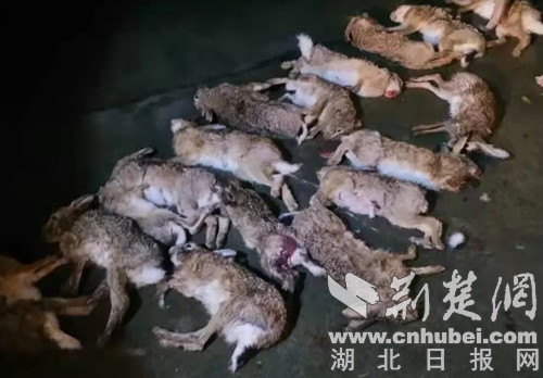 2021年11月2日晚,荆门市公安局十里牌警务站民警和往常一样,在辖区开展巡查工作时,发现一辆面包车形迹可疑。上前盘查时,发现车内两名男子神色慌张,车上还装有5具疑似野生动物死体、3条猎犬和一些狩猎工具。警务站民警立即将该线索移交掇刀分局治安大队。