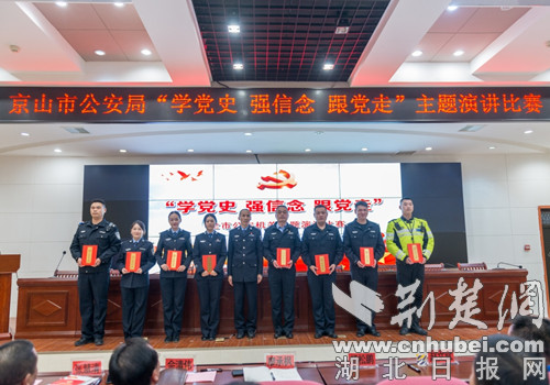 荆楚网(湖北日报网)讯(通讯员 杨怡)为持续推进党史学习教育走深走实,引导广大民辅警更好地从党的百年非凡历程中感悟精神力量。12月3日,京山市公安局举行“学党史 强信念 跟党走”主题演讲比赛,各科、所、队选送了8名选手参加此次比赛。特邀湖北省作协会员、知名公安作家杨松鹏、京山市作家协会副主席赵文斌等9位嘉宾担任本次比赛评委。