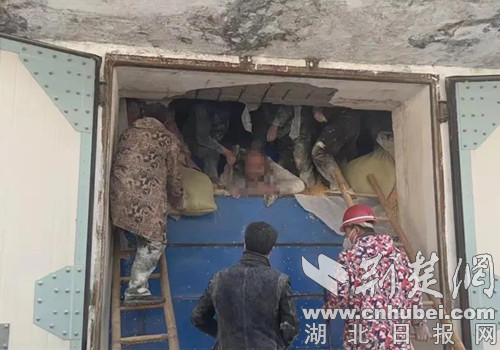 京山市公安局罗店派出所接警后,立即联系消防大队一同前往现场开展救援。到达现场后,发现该粮仓高约数十米,内有近百吨玉米,为防止玉米掉落,大门被隔粮板封的严严实实,仅有一个小小的换气窗。而被困工人此时陷在隔粮板附近,全身被埋压动弹不得,只有头颈部露在外面,如不及时营救,被困者极有可能因长时间挤压发生不测。