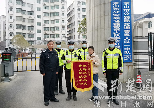 “当危难时刻来临时,我亲身感受到人民警察多么伟大,真的很感谢你们!”1月17日上午10时,彭女士手拿锦旗来到京山市公安局交警一中队,向骑警队员们表达感激之情。交警一中队副中队长陈建华热情接待了彭女士,他表示:这是人民警察应该做的。交警一中队是一个有着优良传统的集体,保道路畅通,守一方平安,为民爱民护民是应尽的职责和义务。