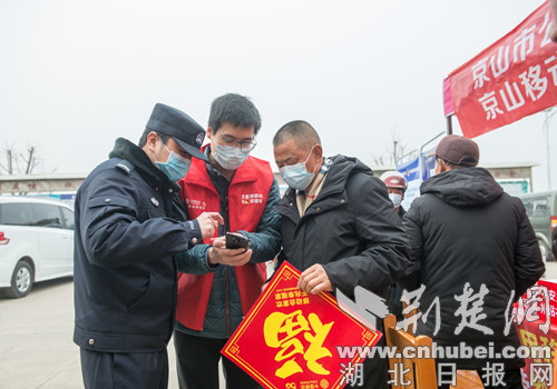 为大力推进平安乡村建设,为乡村振兴创造安全有序、稳定和谐的社会环境,1月20日,京山市公安局联合京山市移动公司走进新市街道四岭村,开展“平安乡村”主题宣传活动,通过开展形式多样的防范宣传与有奖互动活动,为村民送去新春祝福和平安“礼包”。