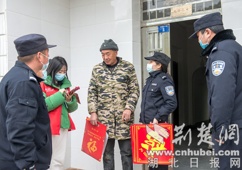 宣传活动中,京山市公安局反诈中心民辅警和新市派出所鄢郝片区中心警务室辅警向村民进行反诈、禁赌、禁鞭等平安知识的宣传,帮助他们下载使用“国家反诈中心”APP,向群众宣传电信诈骗活动的欺骗性、赌博的违法性和烟花炮竹的危害性,提升群众抵制这些违法活动的主动性和积极性,倡导健康文明的生活方式。同时,向现场群众发放了新春对联和“平安福”字,为村民送去喜庆祥和的新春祝福。