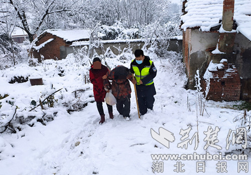 荆楚网(湖北日报网)讯(通讯员 张超)2月7日,沙洋县公安局官垱派出所民警在冰雪天气中开展巡逻,发现一名走失老人并及时救助。