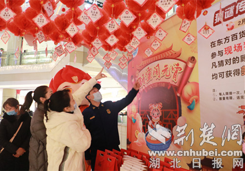 活动地点定在荆门市中天街东方百货2楼中庭,整场活动在女子交警中队的开场舞中拉开帷幕。“边塞烽烟起”打一消防设施等一条条汇集民俗文化和消防知识为一体的灯谜,将消防安全知识和生活场景联系起来,极具娱乐性和教育性,对于猜中答案的群众消防救援人员都为其送上了精美的奖品,猜谜现场群众热情高涨、踊跃参加,不断将活动现场推向高潮。