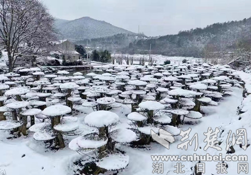 2月17日,正月十七,一场鹅毛大雪,遍地银装素裹,村民们不约而同冒雪前往基地查看盆景成活及生长情况,这株瞧一睢,那株看一看,顺便拍拍雪景发个朋友圈,每个人的脸上都洋溢着满意、开心的笑容……