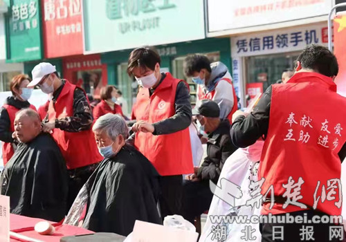 当天上午,在钟祥市阳春广场上,“学习雷锋精神 志愿服务创城”活动率先开展。前来参与活动的志愿者开展了义务免费理发、防火知识宣传、反电信诈骗宣传教育、疫情防控知识宣传及免费健康义诊、法律咨询、义务献血知识宣传等志愿服务活动。