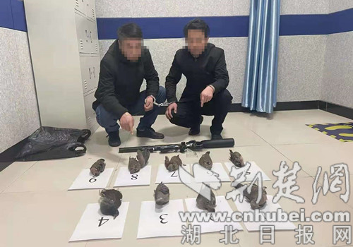 2022年3月6日,皇庄水陆派出所联合森警大队在辖区抓获涉嫌非法狩猎嫌疑人邓某、朱某,现场查获气枪一把,铅弹若干发,斑鸠8只,黑水鸡一只(均为三有动物)。经讯问,邓某交代,当日中午,他和朱某正在用气枪打鸟,被警方当场抓获,想打鸟自己却入了“网”。