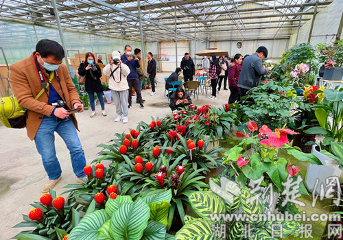“你们看到的盆花叫凤梨,我们温室大棚里还种有白掌、红掌、蝴蝶兰等上百个品种。”湖北农青园艺科技有限公司工作人员石颖说,作为全国最大的盆花基地,该公司规划面积4100亩,已建成高档智能温室1900多亩和3000余平方米的花卉组培育苗工厂,年产凤梨、白掌、红掌等盆花1500多万盆,其中凤梨、白掌等品种在全国拥有40%以上市场占有率,行业知名度和市场影响力极高。