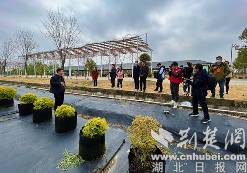 图为媒体记者实地探访钟祥柴湖花卉苗木产业。安从斌摄