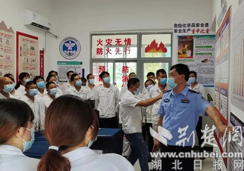 图为民警在长城汽车荆门分公司开展反诈宣传。通讯员供图