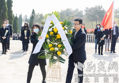 图为向革命先烈敬献花篮。通讯员供图