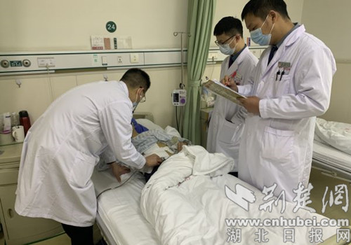 图为医生查看患者恢复情况。通讯员供图