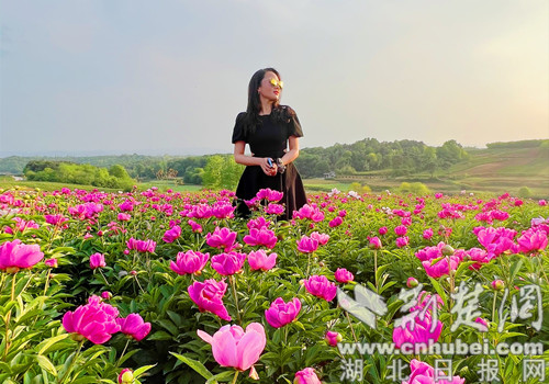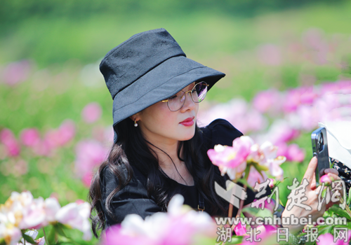 图为游客在芍药花海打卡。安从斌摄
