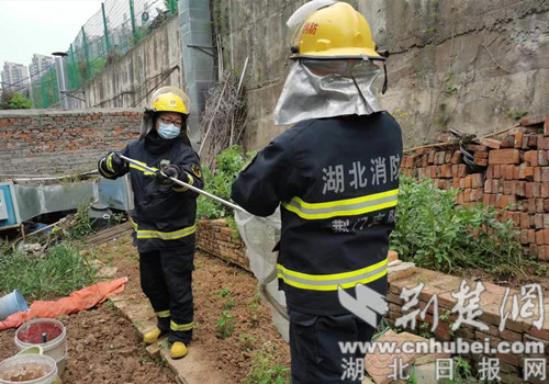 图为消防队员赶到现场将蛇捕获。通讯员供图