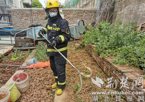 消防部门在此提醒:气温逐渐升高,蛇也进入了活跃期,如果在日常生活中发现蛇,切勿盲目抓捕,应及时寻求专业人士的帮助。