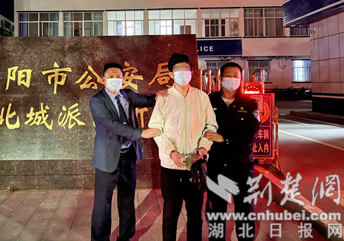 图为民警在枣阳将嫌疑人抓获。通讯员供图