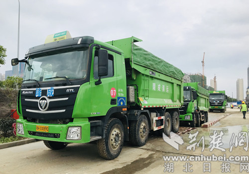 图为城管部门责令对渣土运输车辆进行清洗。通讯员供图