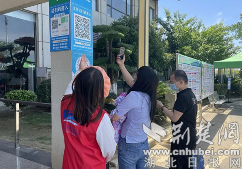 图为景区工作人员指导游客扫码进入景区。通讯员供图