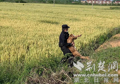 荆楚网(湖北日报网)讯(通讯员 杨怡)5月2日,京山市公安局罗店派出所民辅警搜寻1小时,为群众抱回失踪的初生牛犊,获得群众衷心感谢。