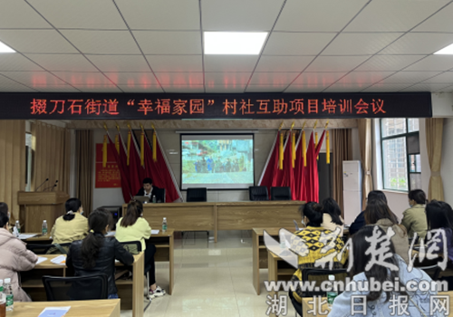荆楚网(湖北日报网)讯(通讯员 聂子尧)5月10日上午,荆门市掇刀石街道社会事务办联合掇刀区慈善会联合在掇刀石街道新时代文明实践所召开“幸福家园”村社互助项目业务操作培训会议,会上邀请了湖北省慈善总会项目办项目专员程昭进行现场授课,各社区分管民政两委参会。