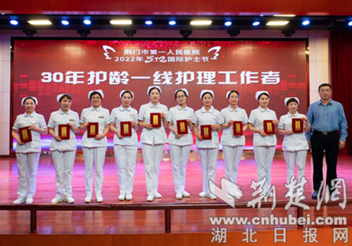 荆楚网(湖北日报网)讯(通讯员 高愫 黎亚静)5月12日,笔者从荆门市第一人民医院获悉,该院近日举行2022年“5·12”国际护士节暨表彰大会,表彰全院在护理岗位上作出突出贡献的先进集体和个人。