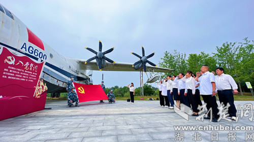 上午9点,荆门市教科所全体党员首先在鲲龙AG600水上飞机前整齐列队,面向党旗,庄严宣誓,重温入党誓词。随后,全体教职工沿着极客公园“红色航班”线路开展了实地参观学习,系统了解了水轰5飞机、AG600飞机、运5飞机等背后的故事,观看《水轰5日志》《永恒的怀念》等红色情景剧,重温红色岁月,感悟初心使命,并在军事体验基地感受红蓝军对抗演练,接受爱国主义教育。
