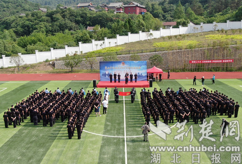 5月30日上午9时,市公安局在京山市公安训练基地举行了简朴而庄重的开幕式,全警种各部门组成11支代表队,300余名民辅警运动员以及16名特邀裁判参加了开幕式和当天赛事。