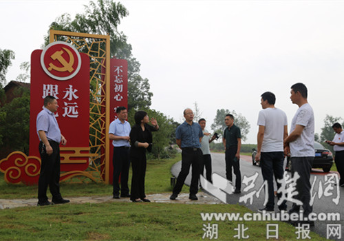 图为考察组参观嘉鱼县官桥镇朱砂村茶旅游融合发展项目。通讯员供图
