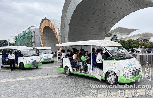 网络大V乘坐观光车参观极客公园。通讯员供图