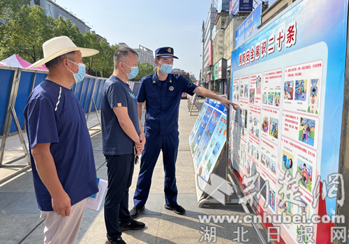 沙洋县消防救援大队结合“安全生产月”宣传咨询日活动,深入辖区拾回桥镇规上企业、重点单位和各村居委会负责人开展消防安全宣讲,结合全国各地近年来发生的火灾案例,阐述火灾预防的重要性;讲解火灾原因、火灾防范、火灾扑救技巧等消防安全知识,以及扑救初起火灾、火场迅速逃生、报警求助、火场疏散逃生等消防安全常识。并组织大家进行现场实操演练。活动进一步增强企业消防安全责任意识,提升消防安全防范能力,为企业消防安全筑牢“防火墙”、拉紧“安全阀”。东宝区、掇刀区、钟祥市、京山市消防救援大队,通过在辖区人员流动量较大的地段设立消防咨询台、发放消防宣传资料、展示消防装备器材、现场解答等方式开展形式多样、内容丰富的消防安全宣传活动,向前来咨询群众普及消防安全知识。同时,引导群众们体验抢险救援器材的使用方法,扫码注册全民消防学习平台,关注湖北消防、荆门消防官方微信公众号,充分调动起广大群众主动参与宣传活动的积极性,活动现场宣传氛围十分热烈。