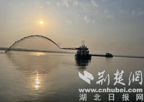 “鄂航浚001”疏浚船应急抢通作业现场。曾鹏摄