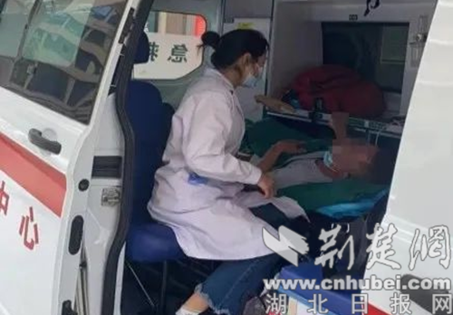 图为医院安排救护车和医护人员全程护送。通讯员供图