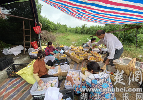 “每天通过抖音直播、微信朋友圈等平台,可以销售50至60单,还有很多专门开车过来买的,每天上午采摘,下午发货,供不应求。”郑周介绍。今年基地黄桃预计亩产能达1500公斤,按照每公斤10元的价格来算,除去成本,一年的纯收入能有12万元。