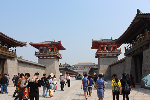 发布会上,湖北志强集团总经理高翔介绍,中国唐城是按照国家5A级景区标准打造的集影视拍摄和旅游休闲于一体的复合型文化旅游景区,将于5月1日正式开城,揭开神秘面纱。景区内凯旋楼、明德门、朱雀廊、东西市、青龙寺、唐皇宫、西明寺、胡玉楼、高力士宅、涧南别业九大建筑群体通过绕城水系巧妙串连,向游客展示一幅盛世大唐画卷。他告诉记者:“中国唐城景区在同一时间最多可容纳8000人参观,每天可接待游客3万人次,现有配套设施可满足游客旅游观赏需求。”