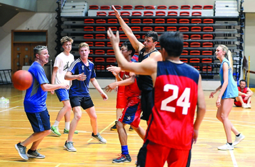 德国学生与十一中学教职工篮球队以球会友 记者任勇 摄