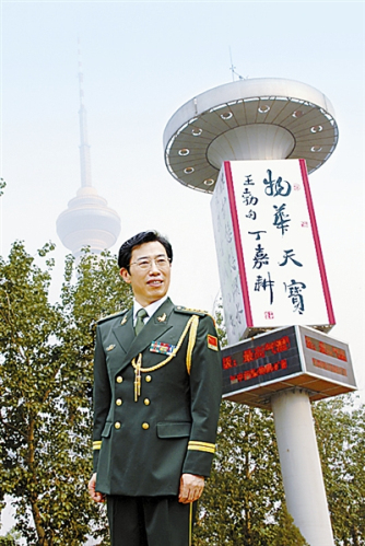 湖北手机报(记者 刘胜) 他的书法五次登上神州飞船,随天空一号翱翔太空,被誉为“天宫墨宝”;他的书法在北京地铁展出15月之久,登上中央电视塔身,有数亿人次观看,被称为“首都的文化风景”;他的书法作为国家礼品赠送给联合国和各国政要,故宫、卢浮宫永久收藏,被冠之“国家礼品”;他题笔书匾,热心公益;做客央视,风光无限;他是丁嘉耕,北京市书协副主席,解放军总后勤部大校……,他最喜欢的称呼是:书法家。