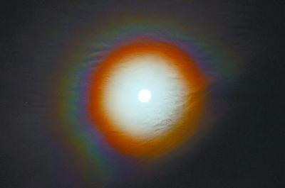 如果您在昨天凌晨1点多钟仰望武汉夜空,您会看到一轮和平时不一样的月亮——被五彩光晕环绕着的明月。气象专家表示,这种现象应该是“月华”,比较少见。