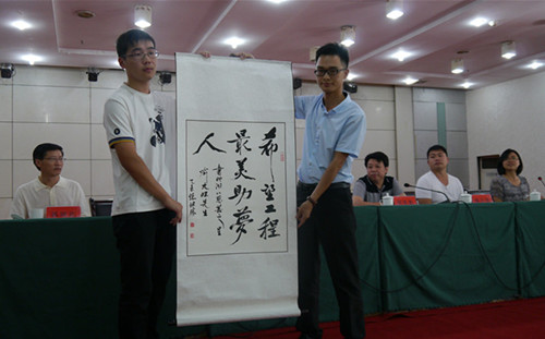 活动现场,为答谢喻友旺先生多年来对竹溪贫困学子的关爱,团县委、县希望办回赠喻友旺先生“希望工程最美助梦人”纪念字画以示感谢。