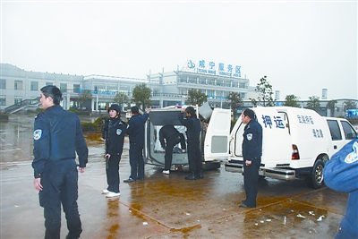 “轰隆”一声响,押运车侧翻倒地,里面4名押运员被撞得东倒西歪,一时无法反应。这时,不远处办公楼内的值班管理员童舟听到响声,赶紧召集了六七名值班保安,赶到事故现场。这时,押运车内4名押运员刚刚爬出车厢,“都没受重伤,但个个都端着枪严阵以待,还以为遇上抢劫呢”。
