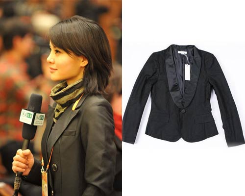 鲜艳的红色西服外套格外喜气,搭配黑色长裤时尚而不失庄重。看更多OL装搭配