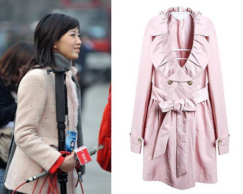 色泽淡雅的粉色将女性的知性美衬托出来,大衣的款式甜美可爱立显淑女风范。