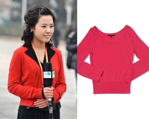 针织衫是OL女星们最长选择的单品,黑色和红色叠搭,将熟女气质展露出来。