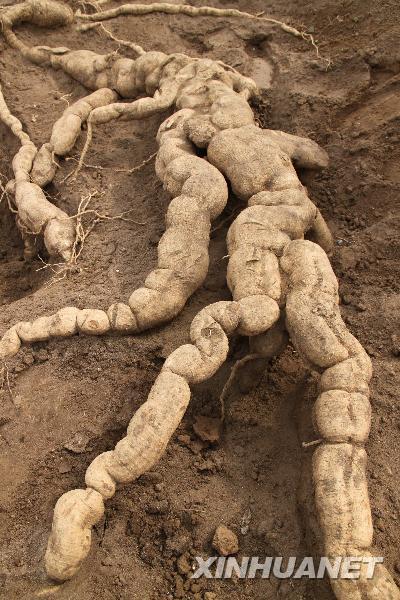 这是4月4日在河南安阳栝楼种植开发示范基地拍摄的巨型栝楼根。