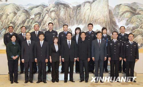 3月16日,中共中央政治局常委、中央政法委书记周永康在北京亲切会见沈战东亲属和先进事迹报告团成员。新华社记者 马占成 摄