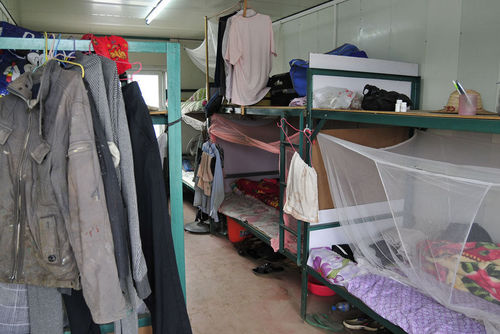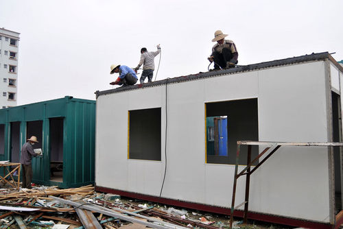 在布吉一处工地附近,民工们住的正是这种集装箱房。工地保安告诉记者,这些房子是租来的,给建筑工人居住,一个18平方米的集装箱房里,可以放5张铁架床,最多可住10人。除居住外,集装箱房还可做办公室、会议室,甚至厨房。